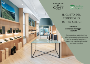 In occasione di Cantine Aperte, l’Enoteca Cavit organizza una degustazione guidata di tre etichette selezionate, pensata per far scoprire i profumi, i sapori e le caratteristiche del territorio trentino. L’evento si terrà sabato 30 e domenica 31 maggio alle ore 11:00. Ogni etichetta sarà valorizzata da finger food finali.